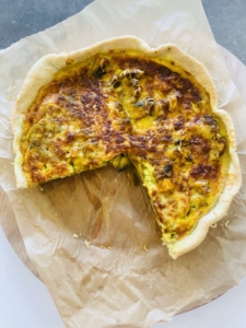 Nous avons une tarte salée avec une pâte maison qui ne contient pas de beurre, et un appareil à garnir qui ne contient pas de crème. La teneur en graisses saturées est fortement réduite et c’est parfait pour équilibrer l’alimentation de toute la famille, ou pour les personnes qui surveillent leur cholestérol, et leur ligne !